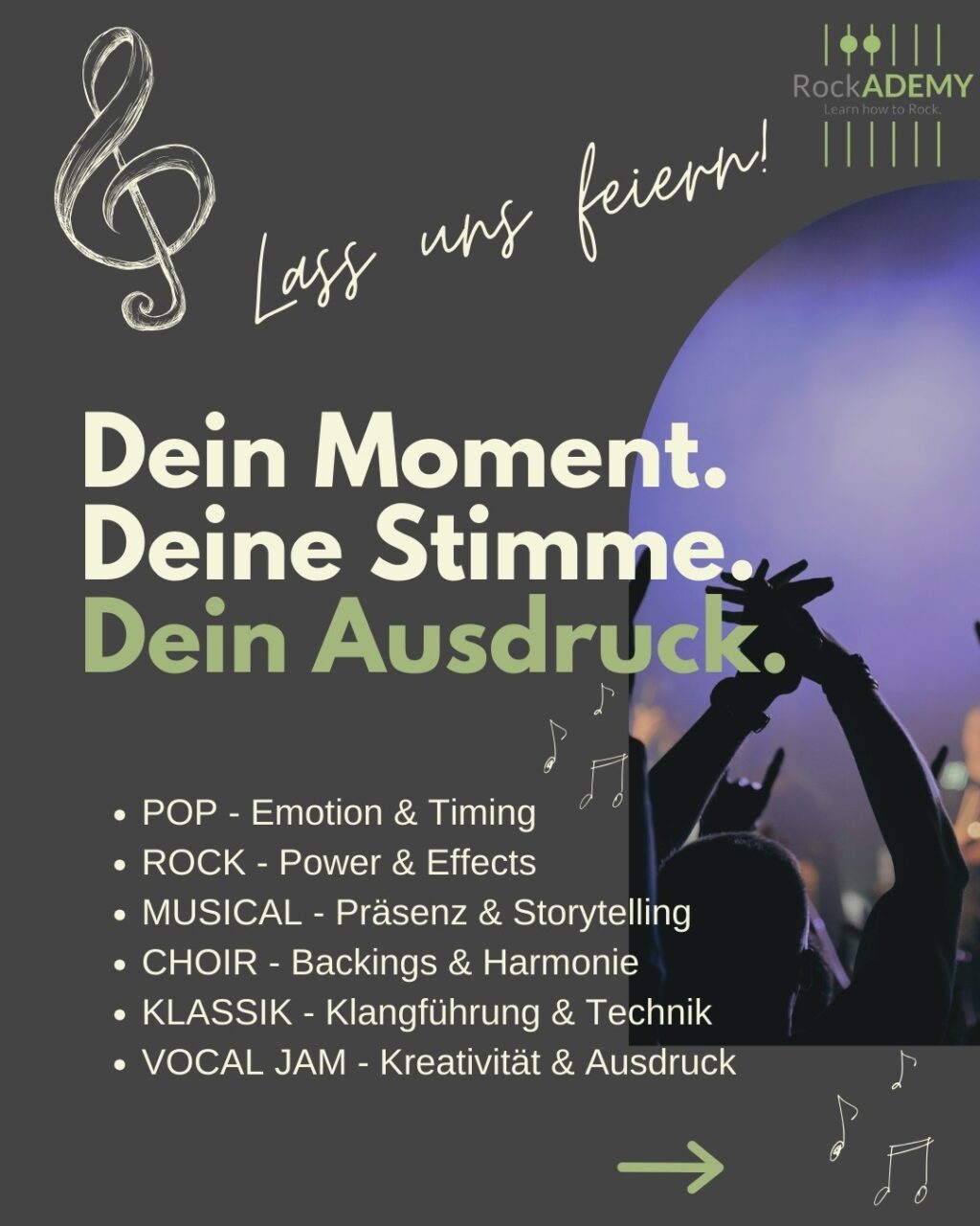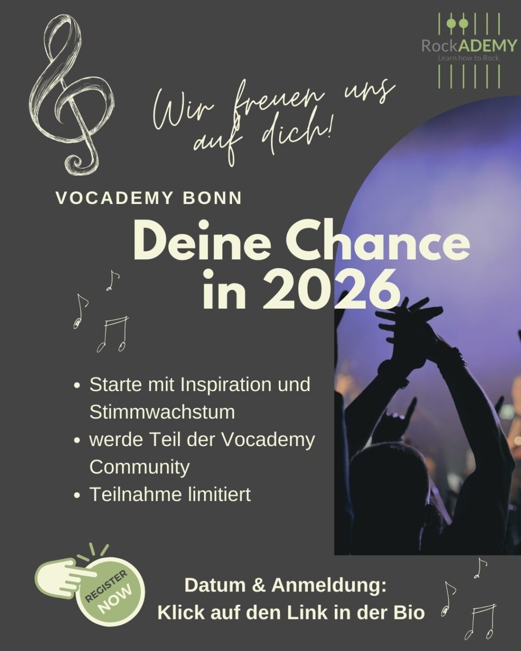 An zwei Wochenenden gibt es geballtes Wissen zum Umgang mit der Stimme in ganz unterschiedlichen Genres. Unterstützt wird das Projekt von unseren Bonner Kolleginnen Julia, Sandra und Sabine. Mehr Infos findet ihr hier: www.vocademy-bonn.de